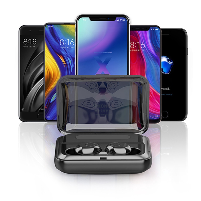 Bilateral Bluetooth Headset Mini High Capacity Earphones with Charging Box 1.Low power, pick up headphones and automatically pair them 2.Automatically disconnect Bluetooth when in storage 3.Wake up Apple Siri voice assistant with one button 4.Charging bin can be used as mobile phone bracket 5.IPX7 class waterproof and dustproof 6.Large capacity charging bin for mobile phone charging, intelligent noise reduction 7.Three-point support fits the auricle comfortably 8.Two headphones can be separately linked to two different mobile phones, compact and compatible Specifications: 1.Bluetooth: 5.0 version 2.Transmission range: about 15 mm 3.Headphone size: 31.5cm 4.Headphone weight: 4.5g 5.Charging bin weight: 85g 6.Charging bin size: 83cm 7.Headphone battery capacity: 50mA 8.Charging bin battery capacity: 1300mA 9.Call time: about 5 hours 10.Listening time: about 4 hours Compatible with: 1.Apple/Xiaomi/Huawei etc and other phones and devices which support Bluetooth 5.0 version Package included: 1 x Bilateral Bluetooth Headset Mini High Capacity Earphones with Charging Box 1 x Manual