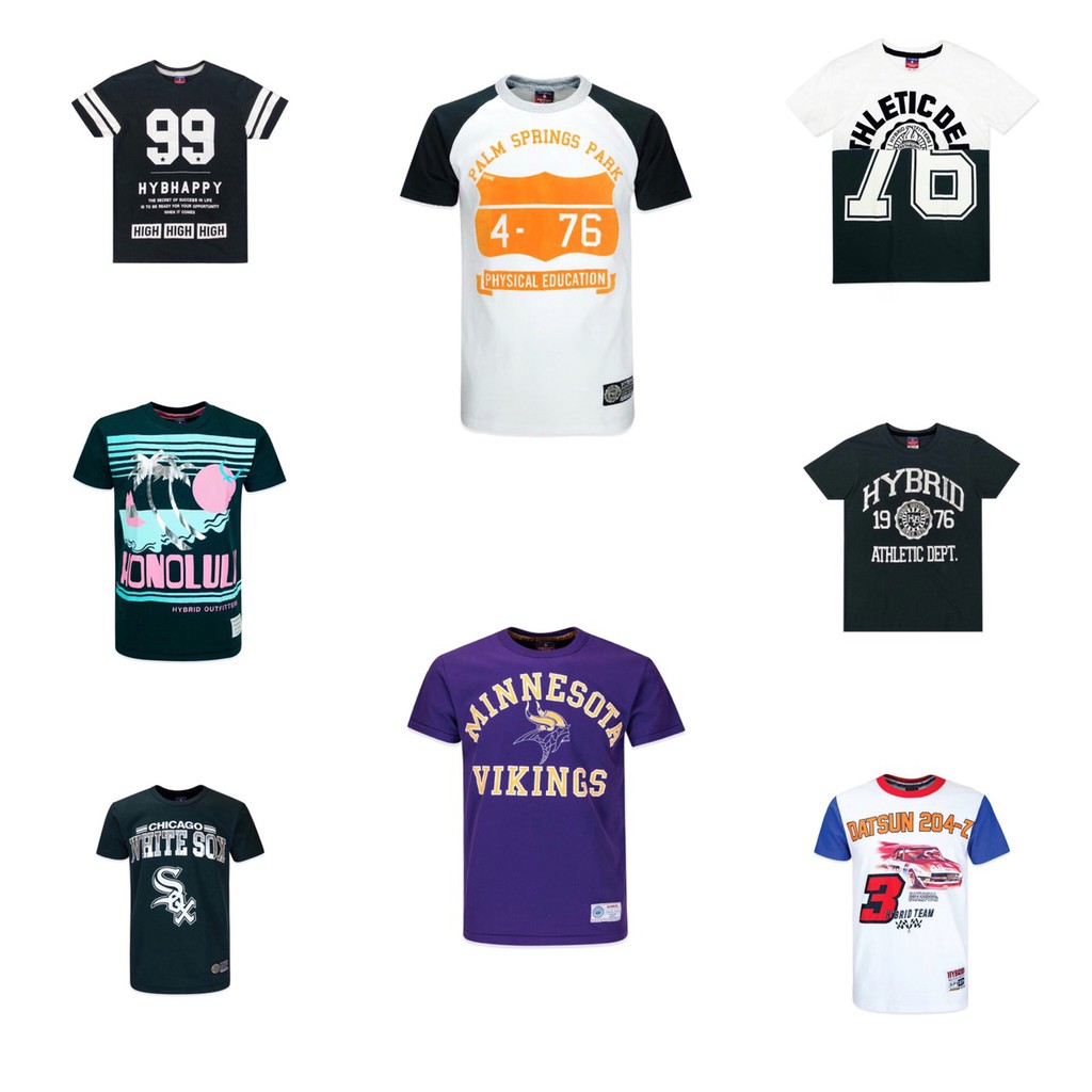 *ไฮบริด เสื้อยืดแขนสั้นชาย ราคาพิเศษ*ไฮบริด เสื้อยืดแขนสั้นชาย ราคาพิเศษ 1. 99 HYBHAPPY สีดำ MTS-889/2 BL 2. 4-76 PALM SPRINGS PARK สีขาว/ดำ MTS-1132 WH/BL 3. THLETIC 76 สีขาว/ดำ MTS-802/1 WH/BL 4. HONOLULU สีดำ MTS-1154 BL 5. HYBRID 1976 สีดำ MTS-799/4 BL 6. WHITE SOX สีดำ MTS-1141 BL 7. MINNESOTA สีม่วง MTS-1145 VI 8. DATSUN 204-Z สีขาว MTS-1137 WH