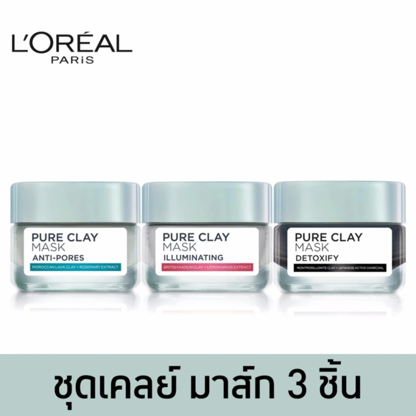 สั่งซื้อ ลอรีอัล ปารีส เพียวเคลย์มาส์ก อิลลูมิเนทติ้ง+ แอนตี้-พอร์ + ดีท๊อกซิฟาย (Pure Clay Mask,บำรุงผิวหน้า