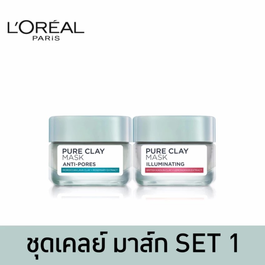 สั่งซื้อ ลอรีอัล ปารีส เพียวเคลย์มาส์ก อิลลูมิเนทติ้ง 50 กรัม+แอนตี้-พอร์ 50 กรัม(Pure Clay Mask,บำรุงผิวหน้า