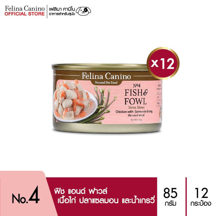 ขาย Felina Canino (อาหารสำหรับสุนัข) : Fish & Fowl (ฟิช แอนด์ ฟาวล์) แพค 12 กระป๋อง ราคาถูก