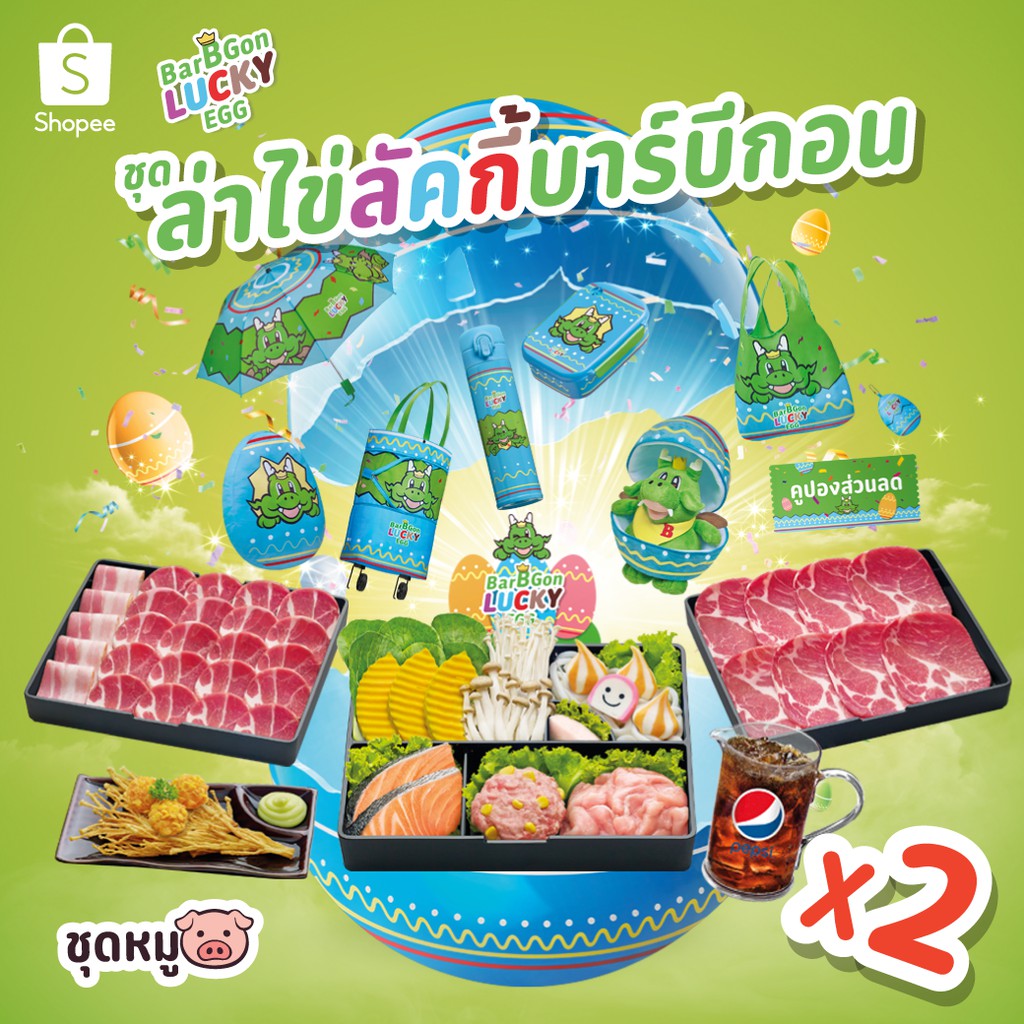 สั่งซื้อ [E Coupon] BBQ Plaza ชุดล่าไข่ลัคกี้บาร์บีกอนหมู 2 เซ็ต มูลค่า 1298 บาท คูปองหมดอายุ 15 ม.ค. 63