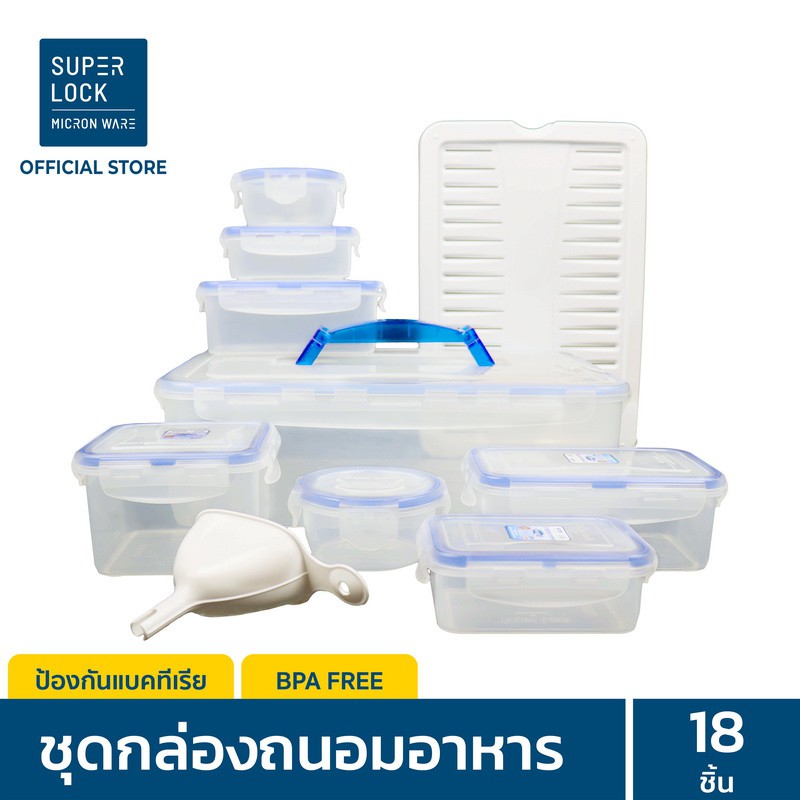 สั่งซื้อ Super Lock กล่องถนอมอาหาร เซต 18 ชิ้น รวมฝา (8 กล่อง + ถ้วยตวง + แผ่นรองน้ำ) รุ่น 5070-S18 BPA Free
