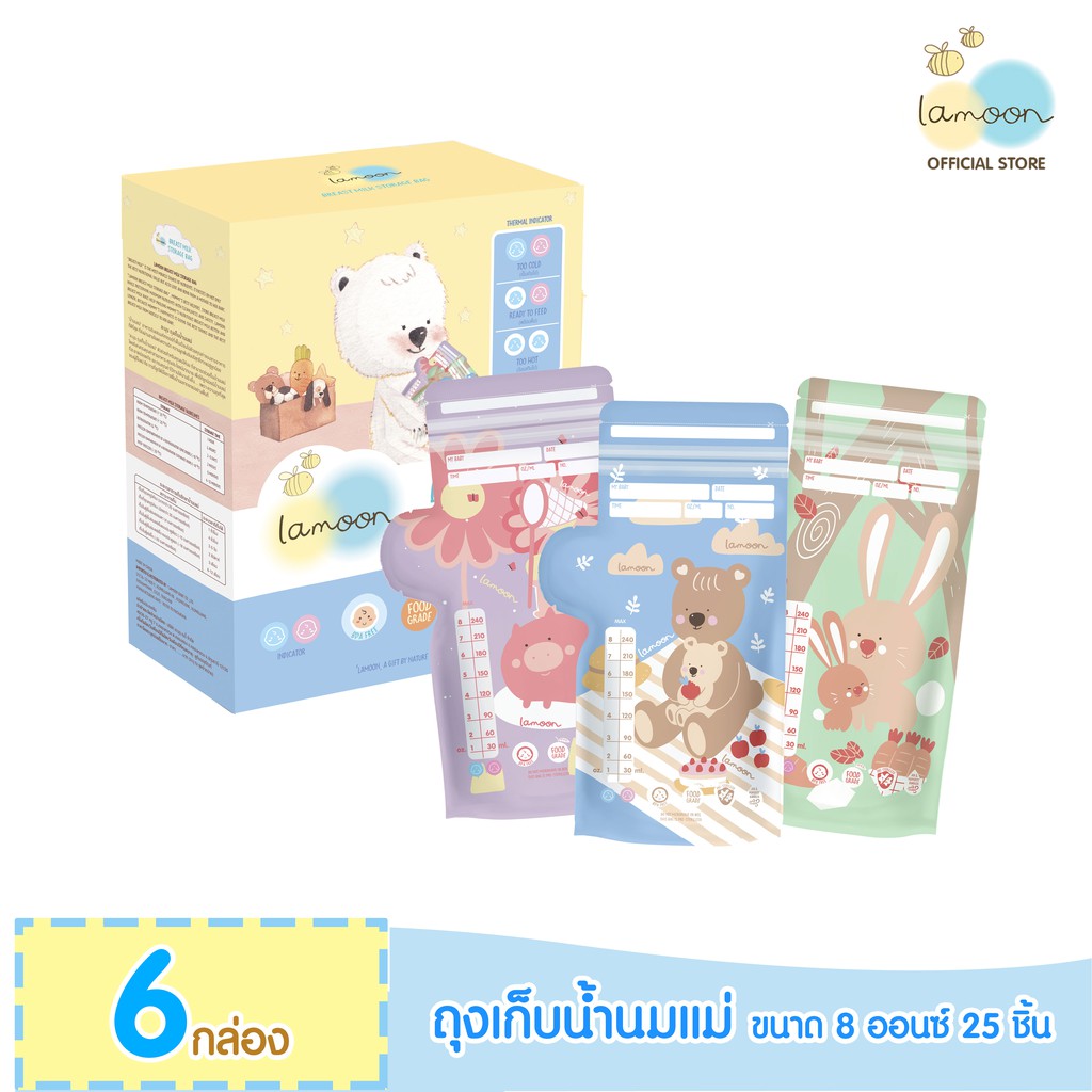 สั่งซื้อ [ประหยัดสุดค้ม]ละมุนเบบี้ ถุงเก็บน้ำนมแม่ ขนาด 8 ออนซ์ 25 ชิ้น 6 กล่อง