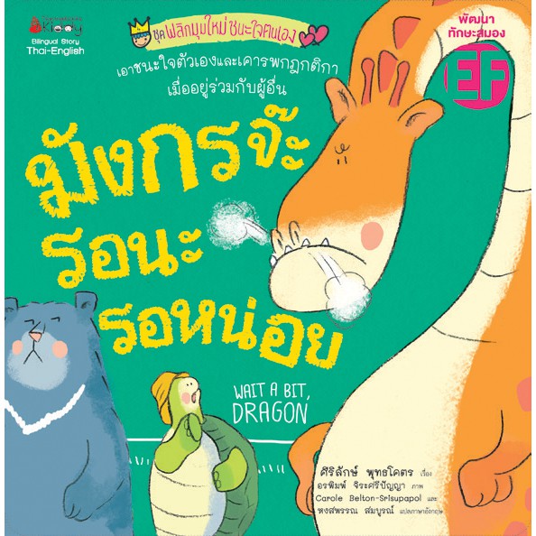 หากทุกคนอยากเล่นชิงช้าในเวลาเดียวกันจะต้องต่อแถวและ แกว่งได้คนละไม่เกิน 10 ครั้ง มังกรไม่อยากรอจึงทำทุกอย่างให้เพื่อน ยอมให้ตนเล่นก่อน แต่ไม่มีใครให้ มังกรเลยหันไปทำอย่างอื่นฆ่าเวลา มารู้ตัวอีกทีก็ถึงรอบของตนเองแล้ว เขาจึงรู้ว่าการรอคอยไม่ยากเย็น อย่างที่คิดหากรู้จักรับมือกับอารมณ์ของตนเองให้ดี จุดเด่น • หนังสือคัดสรรโครงการ “หนังสือเด็กที่มีเนื้อหาส่งเสริม ทักษะสมอง EF” • มีคำสัมผัสและเนื้อเรื่องภาษาอังกฤษ อ่านแล้วได้อะไร • ปลูกฝังให้เด็ก ๆ มีความอดทน รับมือกับอารมณ์ต่าง ๆ อย่างสร้างสรรค์ และรู้จักปฏิบัติตามกฎกติกามารยาทในสังคม • ช่วยพัฒนาทักษะภาษาและฝึกความจำให้เด็ก ๆ กลุ่มเป้าหมาย • คุณพ่อคุณแม่และคุณครูที่ต้องการส่งเสริมให้เด็ก ๆ มีความอดทน รู้จักรับมือกับอารมณ์ต่าง ๆ และรู้จักเคารพกฎกติกา • เด็ก 3-6 ปี พ่อแม่ผู้ปกครอง ครูและผู้ที่ทำงานกับเด็ก