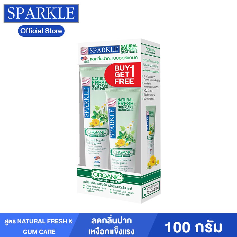 สั่งซื้อ Sparkle ยาสีฟัน สูตร Natural Fresh & Gum Care 100 กรัม ฟรี 50 กรัม kuron