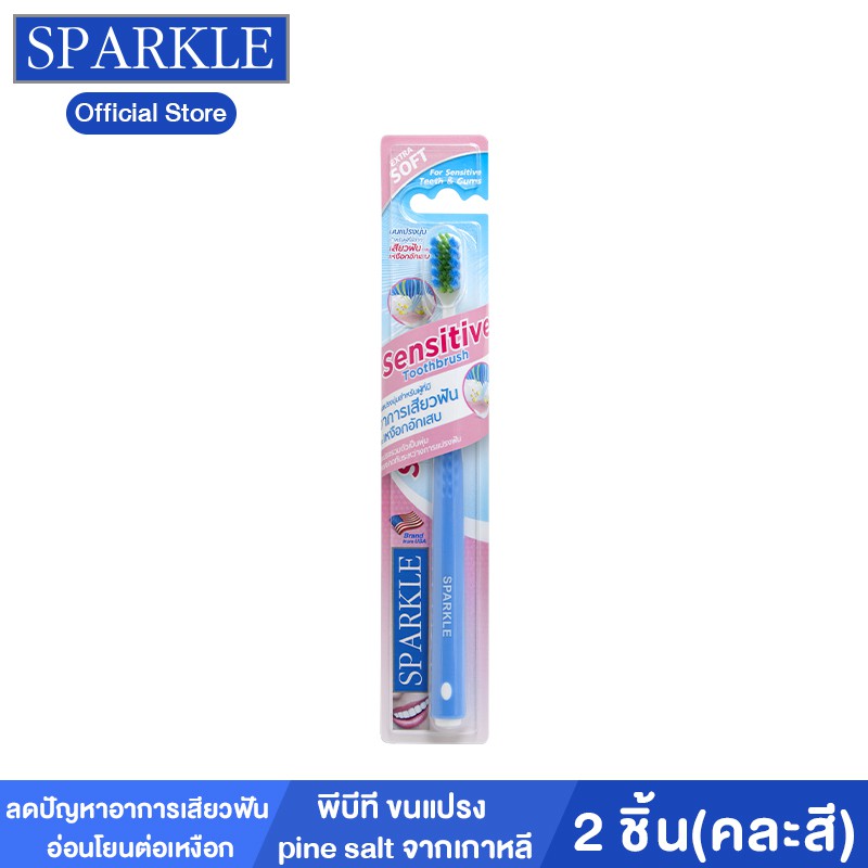 ขาย [แพ็ก 2] - Sparkle แปรงสีฟัน รุ่น Sensitive Toothbrush รุ่น SK0392 คละสี ฟ้า ชมพู เขียว kuron ราคาถูก
