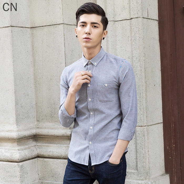 สั่งซื้อ เสื้อเชิ้ตแขนยาวสีขาวสไตล์เกาหลีสำหรับผู้ชาย