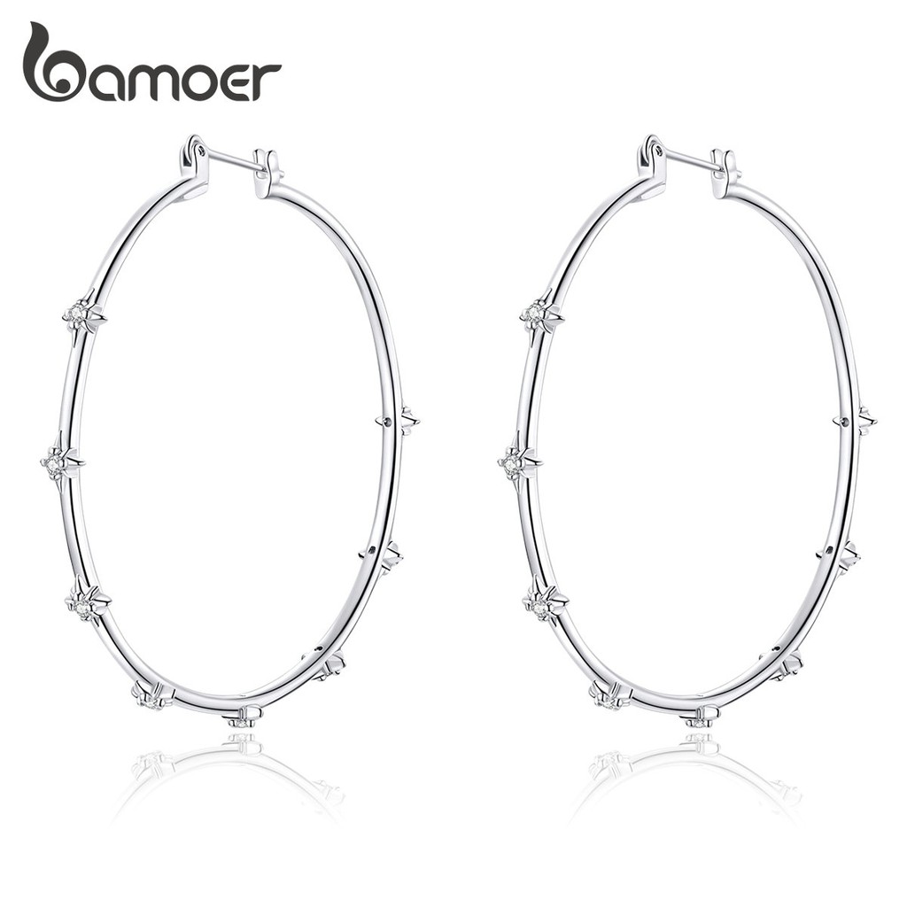 【Romantic big earrings dotted with charming mantle stars is lighting up my bleak life.】---From Designer Brand Name:Bamoer Product Name:Star Earrings Weight:10.1 gram Size:Ear ring diameter: 5.3cm Material:Copper + Platinum + Zircon Model Number:BIE014 Occasion: Anniversary,Engagement,Gift,Party,Wedding etc. Fine or Fashion: Fashion Package Include: Product*1+Jewelry Velvet Bag/Jewelry Box*1 ⚠⚠ Silver Jewelry Maintenance: 1. Avoid wearing when bathing: Jewelry is afraid of acidity, can't touch detergent, please avoid wearing it when taking a bath; 2. Avoid contact with chemicals: Remember not to let jewelry touch chemicals such as cosmetics, cause it is easy to chemically react with jewelry to make its surface tarnished; 3. Avoid wearing when sweating: sweat contains fatty acids, urea and other ingredients, which have a corrosive effect on jewelry; 4. Fine velvet wipes: Please use a fine velvet cloth to keep the jewels bright. If you don't wear them, please put them in the jewelry box. Due to the difference in the display of the terminal, there may be slight color difference between the product image and the actual product. I hope you can understand it. If you are satisfied with our products after receiving the goods, I hope you can give us a 5 star review; If you have any problems with the goods, please feel free to contact us and we will be happy to help you solve it.