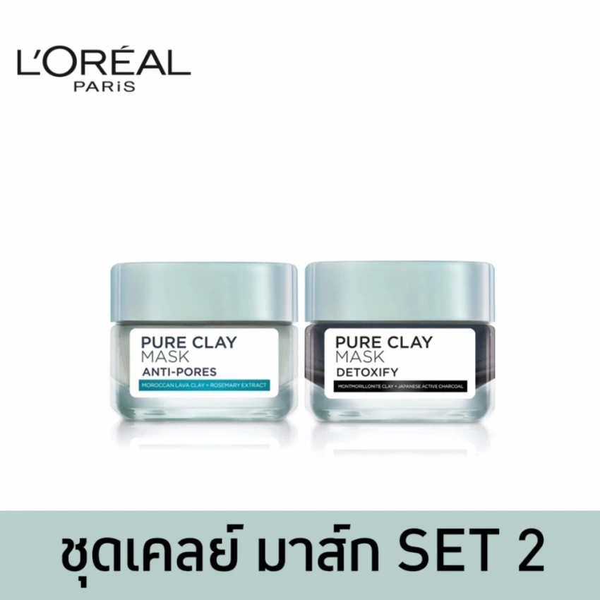 ขาย ลอรีอัล ปารีส เพียวเคลย์มาส์ก แอนตี้-พอร์ 50 กรัม + ดีท๊อกซิฟาย 50 กรัม (Pure Clay Mask, บำรุงผิวหน้ ราคาถูก