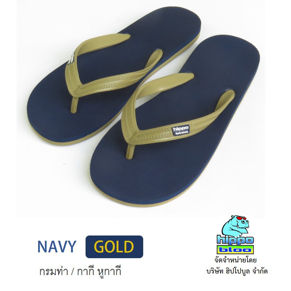 สั่งซื้อ Hippo bloo รองเท้าแตะฮิปโปบูล NAVY GOLD ชาย/หญิง กรมท่า/กากี หูกากี เบอร์ 9.5-13 EU37-45