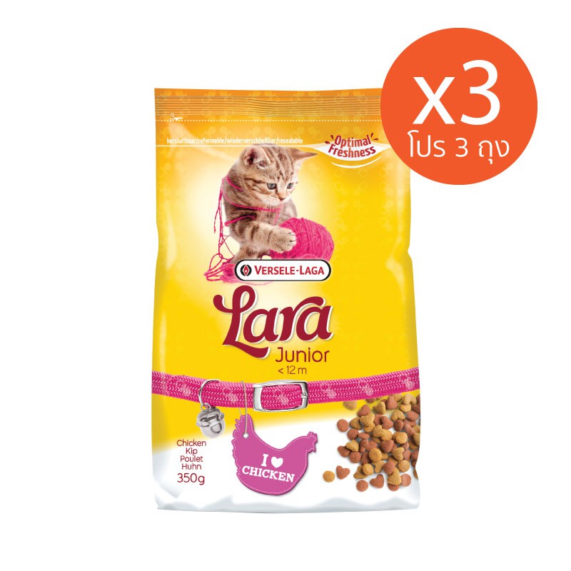 ขาย Lara Cat Food, 350g.(กรัม) 3 packs แพ็ค 3 ถุง ลาร่า อาหารแมวโปรตีนสูง หอมอร่อยจากเบลเยี่ยม ราคาถูก