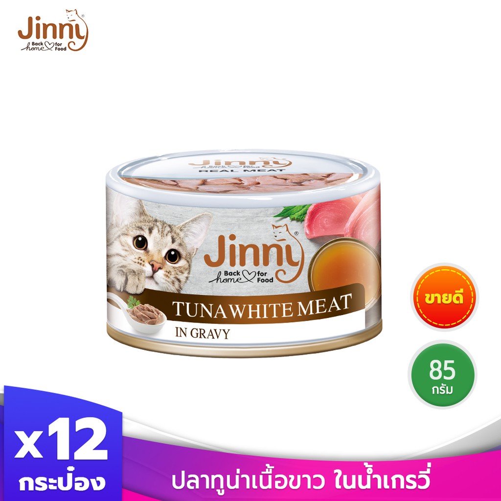 สั่งซื้อ Jinny จินนี่ ปลาทูน่าเนื้อขาว ในน้ำเกรวี่ 85 กรัม บรรจุ 12 กระป๋อง