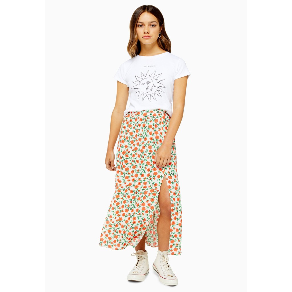 ขาย TOPSHOP กระโปรงยาว PETITE Cream Double Split Floral รุ่น 26K16RCRM สีเบจ ราคาถูก
