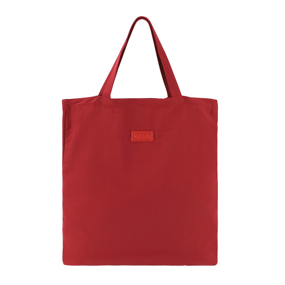 NaRaYa กระเป๋าถือพกพา Eco Hand Bag สีแดง ปากกระเป๋ามีกระดุม SNAP เปิด-ปิด ไม่มีซับใน มีกระเป๋าใบเล็ก สำหรับพับกระเป่าใบใหญ่ใส่ Made of NYLON Dimension (L x W x H cm) : 39.5 x 44 cm