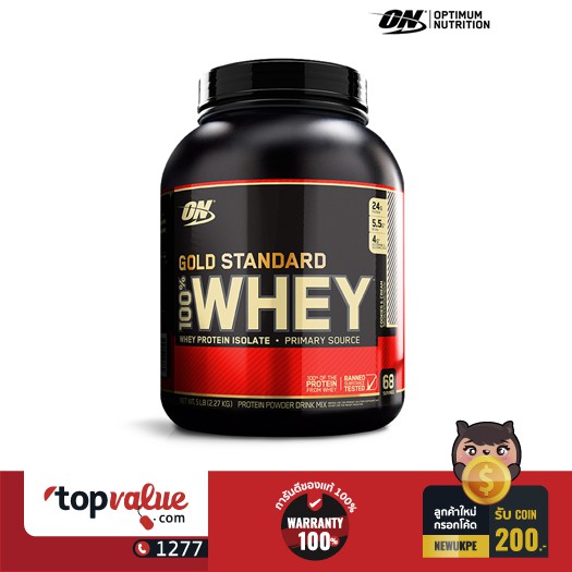 ▶▶โปรดอ่านก่อนสั่งซื้อ◀◀ ✔️สินค้าทุกชิ้นของทางร้าน Topvalue เป็นสินค้าใหม่ ของแท้ 100% สามารถออกใบกำกับภาษีเต็มรูปแบบได้ ✔️บริษัทฯ ยินดีรับเปลี่ยน / คืนสินค้า ภายใน 7 วัน ♻️ สาเหตุและข้อตกลงของการขอเปลี่ยนหรือคืนสินค้า ♻️ 1.สินค้าใช้งานแล้วมีปัญหาภายใน 7 วัน : บริษัทจะเปลี่ยนสินค้าใหม่ให้ลูกค้า 2.เปลี่ยนใจ : ไม่สามารถขอคืนสินค้าได้ แต่สามารถเปลี่ยนสีหรือรุ่นที่ราคาเท่าเดิม 3.ได้รับสินค้าผิด : สินค้ายังไม่ถูกใช้งาน และต้องอยู่ในสภาพสมบูรณ์ 4.สินค้าไม่ตรงตามที่โฆษณาไว้ : สินค้าไม่สามารถใช้งานได้ตามที่บรรยายไว้ สินค้ายังไม่ถูกใช้งาน และต้องอยู่ในสภาพสมบูรณ์ 5.สินค้าชำรุด/เสียหาย : ส่งสินค้ากลับมาให้ทางบริษัทตรวจสอบ กล่องและอุปกรณ์ต้องครบ - หากพบว่า มีปัญหาจริง บริษัทจะเปลี่ยน/คืนเงินให้ - หากพบว่า ไม่ได้มีปัญหาจริง บริษัทจะจัดส่งสินค้าเดิมให้ ✔️ทางบริษัทฯ จะรับผิดชอบค่าขนส่ง จากข้อผิดพลาดของทางบริษัทฯ เขตกรุงเทพฯ ไม่เกิน 150 บาท และ ต่างจังหวัด ไม่เกิน 300 บาท ☎️ สอบถามรายละเอียดสินค้าได้ทาง Chat หรือติดต่อ Topvalue Call center 1277 ✄============================== แนะนำสินค้า Optimum Nutrition Whey Protein Gold 5lbs - Cookie and Cream สุดยอดเวย์โปรตีนที่ได้รับความนิยมที่สุดจากทั่วโลก การันตีได้จากรางวัล ที่ได้รับมากมาย เช่นอาหารเสริมแห่งปี และรางวัลโปรตีนแห่งปี ติดต่อกัน ถึง 10 ปี ตั้งแต่ปี 2004 จนถึงปีล่าสุด 2013 โดยยอดขายสูงที่สุดจากทั่วโลก เป็นการยืนยันของคุณภาพได้เป็นอย่างดี !! คุณสมบัติ เหมาะสำหรับ ผู้ที่ต้องการ Whey Protein คุณภาพสูงในการเสริมสร้างกล้ามเนื้อ และฟื้นฟูกล้ามเนื้ออย่างรวดเร็ว มีส่วนผสมหลักเป็น Whey Protein Isolate ซึ่งมากกว่าทุกๆ ยี่ห้อ ซึ่งทำให้มีปริมาณโปรตีนสูงที่สุด ถึง 24 กรัม ต่อเสริพ และเมื่อเทียบตามสัดส่วนต่อ 100% จะให้โปรตีนสูง ถึง 79% มีส่วนผสมของ HydroWhey หรือ Hydrolyzed Whey Protein Isolate ซึ่งผ่านกระบวนการ Peptide จึงทำให้ดูดซึมได้เร็วยิ่งขึ้น ON - Optimum 100% Whey Protein Gold Standard มีการใช้ Lactase และ Aminogen® ในการผลิตซึ่งเป็นเอมไซน์ช่วยย่อย จึงทำให้สามารถดูดซึมได้เร็วยิ่งขึ้น และร่างกายสามารถสังเคราะห์โปรตี และอะมิโนแอซิดต่างๆเอาไปใช้ได้มากยิ่งขึ้น ละลายน้ำได้ง่าย และละลายได้หมดในพริบตา มี L- Glutamine มากกว่า 4 กรัม ต่อเสริพ และยิ่งกว่านั้นยังมี BCAA (leucine, isoleucine, and valine) สูงถึง 5.5 กรัม ไม่มีส่วนผสมของน้ำตาล และสารให้ความหวาน Aspartame ที่เป็นอันตราย ข้อมูลพื้นฐาน Whey Protein Isolate (WPI) Main Ingredient Whey Protein Microfractions from Whey Protein Isolates & Ultra-Filtered Whey Protein Concentrate Over 4 Grams of Glutamine & Glutaminc Acid in Each Serving More Than 5 Grams of the Naturally Occurring Branched Chain Amino Acids (BCAAs) Leucine, Isoleucine, and Valine in Each Serving The Gold Standard for Protein Quality วิธีรับประทาน : วันที่ออกกำลังกาย หลังตื่นนอนทันที ชง Whey Gold Standard 1 ช้อนตวง ผสม