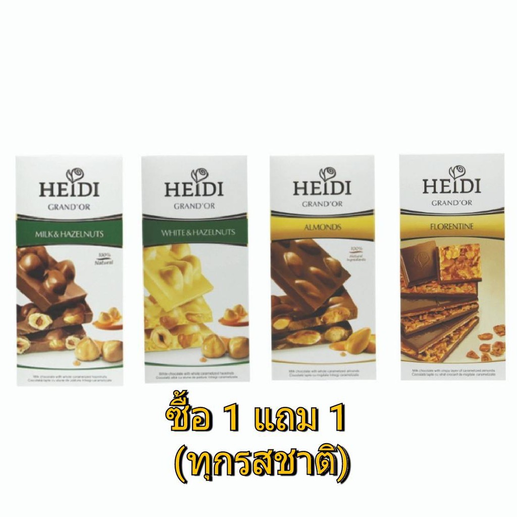 ภายในไม่กี่วัน [ซื้อ1แถม1]HEIDI GRAND'OR ช็อคโกแลตนมเข้มข้นและไวท์ช็อคโกแลต ที่ผสมถั่วเต็มเมล็ด เต็มคำ นำเข้าจากโรม จะถูกส่งมาถึงบ้านคุณ