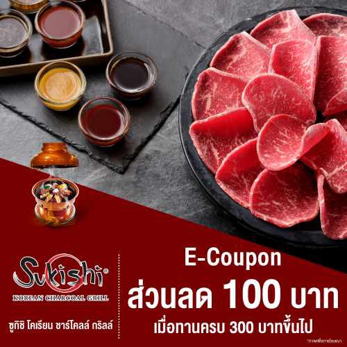 สั่งซื้อ [E-coupon] Sukishi คูปองส่วนลด 100 บาท ร้าน Sukishi Korean Charcoal Grill (เมื่อทานครบ 300 บาท)