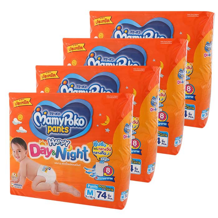 สั่งซื้อ มามี่โพโคแฮปปี้เดย์&ไนท์ [ถูกยกลัง] ไซส์ M 74 ชิ้น 4 แพ็ค