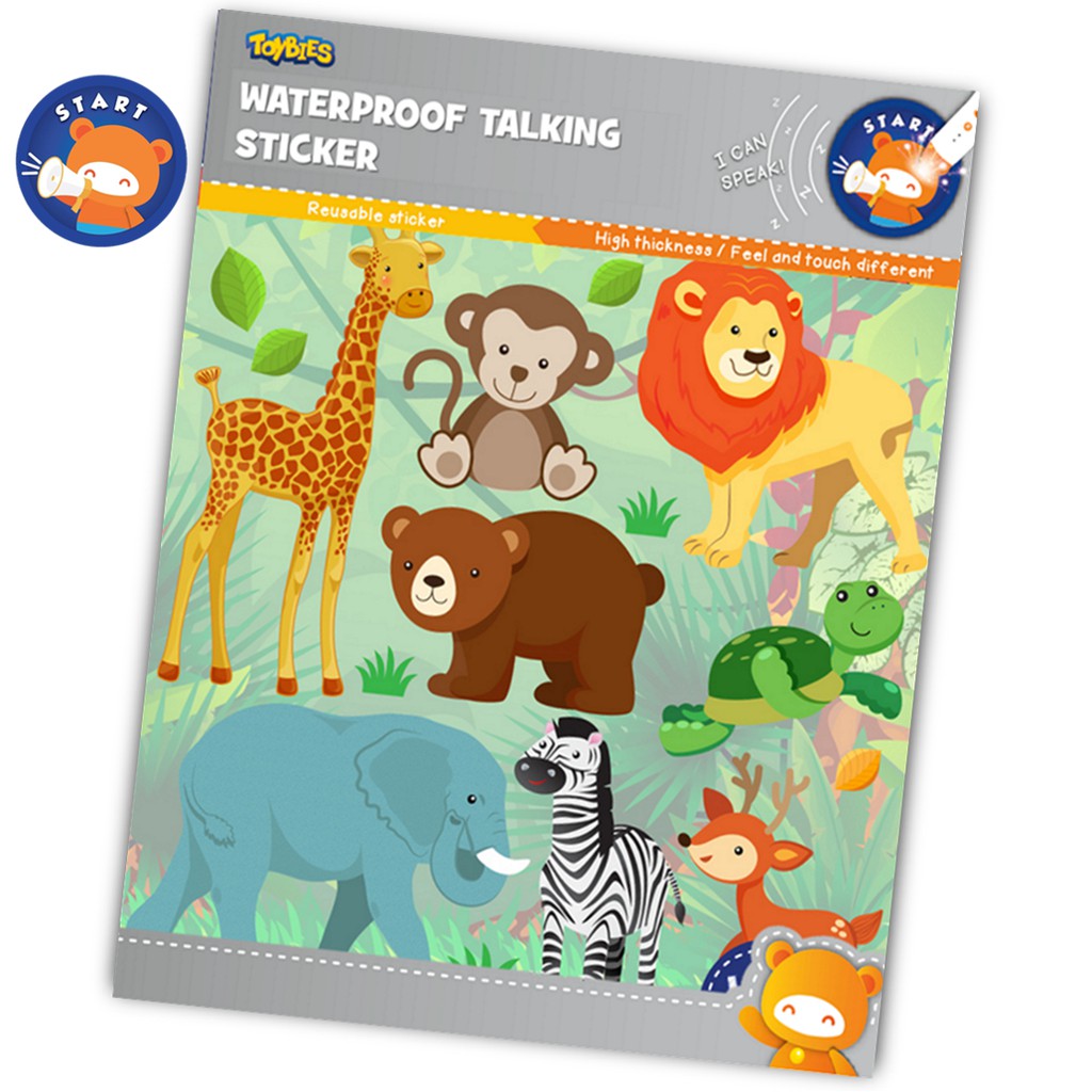 #ทอยบี้ส์สติ๊กเกอร์กันน้ำ+พูดได้ สติ๊กเกอร์พูดได้โดยใช้ร่วมกับปากกา Toybies Talking Pen เรียนรู้ภาษาอังกฤษ ฝึกการออกเสียง สนุกกับเสียงสัตว์นานาชนิด > วัสดุแข็งแรง ฉีกไม่ขาด > แกะแล้วติดใหม่ได้ > กันน้ำ 100% > เนื้อสติ๊กเกอร์นูนหนา ให้สัมผัสที่แตกต่าง > สีสันสดใสน่ารักมาก ๆ สำหรับเด็กเล็ก 0.6+ ติดได้ทุกที่ไม่ว่าจะเป็นกระเบื้องห้องน้ำ กระจก ผนังตู้ ตู้เย็น ไม้ เตียงเด็ก เบาะรองคลาน