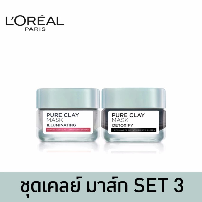 ขาย ลอรีอัล ปารีส เพียวเคลย์มาส์ก ดีท๊อกซิฟาย 50กรัม + อิลลูมิเนทติ้ง 50กรัม (Pure Clay Mask, บำรุงผิวหน ราคาถูก