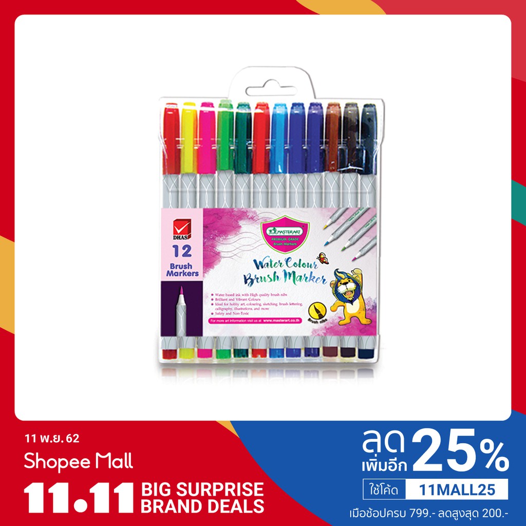 คุณสามารถซื้อ Master Art มาร์คเกอร์หัวพู่กัน 12 สี >>ออนไลน์ได้ที่นี่<<