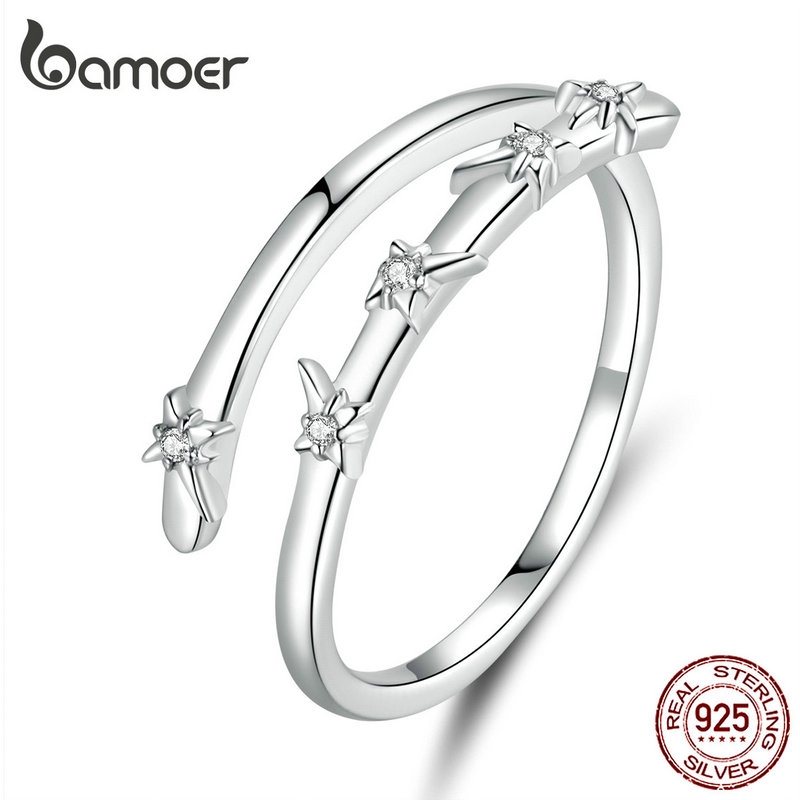 ภายในไม่กี่วัน BAMOER 925 Silver Fashion Rings Geometric Star SCR573 จะถูกส่งมาถึงบ้านคุณ