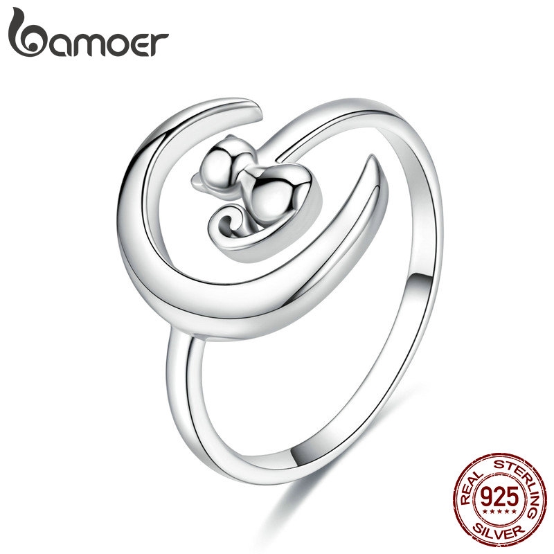 สั่งซื้อ BAMOER 925 Silver Fashion Rings Moon Cat SCR451